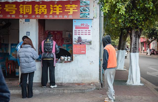 原本我计划的是去当地朋友推荐的夏记老字号卷粉,但可能是我来的时间不对,刚好今天老板歇业了,但一墙之隔的老号铜锅洋芋也有,我便跟着排队的人群走了过去。