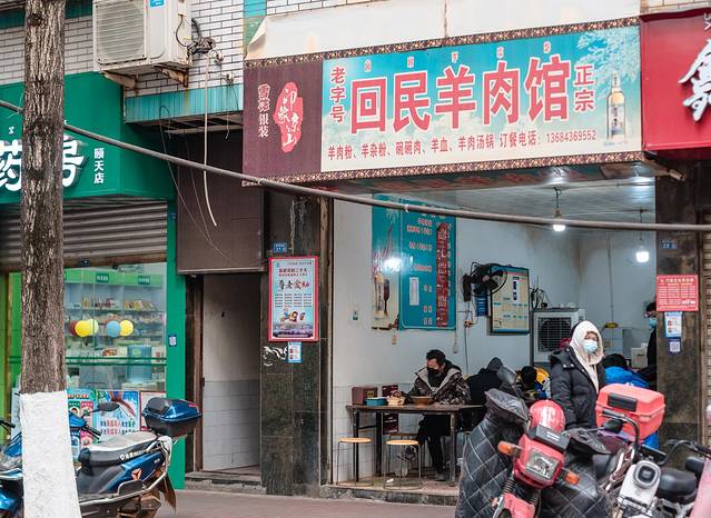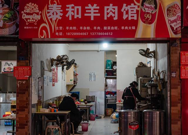 我觉得能跟羊肉粉比个高下的,就一定是大街小巷都能看到的羊肉馆了。按照我个人找美食的习惯,一定是要往学校附近去看看,毕竟能被学生们喜欢的,一定不会差。在逛了一圈后我被一家普通的羊肉馆店吸引住了。