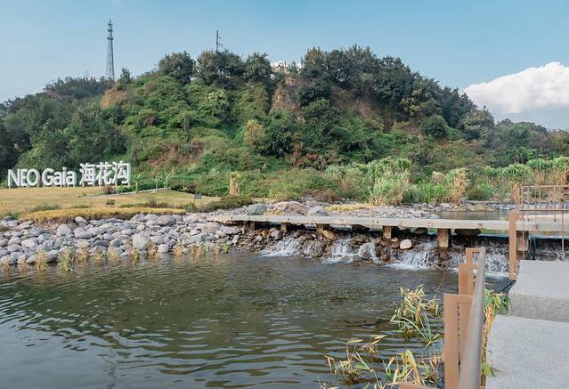 和单纯的步道不同,海花沟的两旁被设计了不少心机,精巧的园林让人每走几步就忍不住停下来掏出手机,拍下盛开的花朵来分享给身旁还未来过的小伙伴。