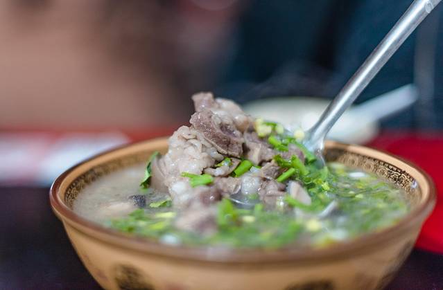 羊肉汤一定要单独盛出来出来喝,洒上葱花、香菜、薄荷叶,一口下去浓郁而鲜美。