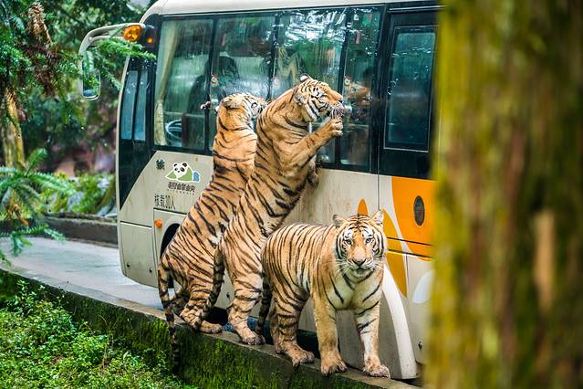 野生动物园线路推荐:入口乘坐观光车游览猛兽区—虎跳水表演—小动物幼儿园—花果山水帘洞—松鼠猴园—科普长廊—百鸟乐园—动物行为展示场—游乐中心—亚洲象行为展示—动物纪念园—小观光车乘坐点—动物乐园—豹园—白狮白虎馆—科教馆—动物行为展示场