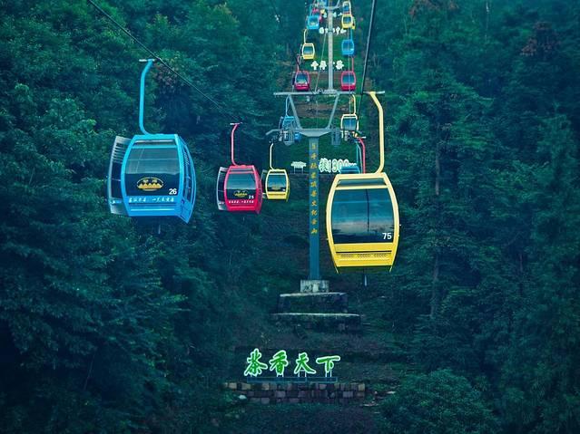 从蒙顶山底,一路乘缆车上山顶,鲜花、茶叶、云海、日出、索道、高空桥、寺庙、禅院、茶技演出、神秘地标、古代历史、红色历史、高空体验,你想玩的元素这里通通都有。
