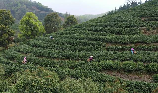 杳然宁静的山谷,汩汩溪流,山明水秀的自然环境,滋养了村落的灵秀之气,熏染了村民的质朴情怀。安徽省安庆市宜秀区五横乡辖5个村居,均为省级美丽乡村,青山环绕,茶园绿波涌动,放眼望去,不管是云雾缭绕的龙山之巅,还是连绵起伏的浅山丘陵,漫山的茶树重重叠叠,宛如一幅铺展在大地上的锦绣画卷。