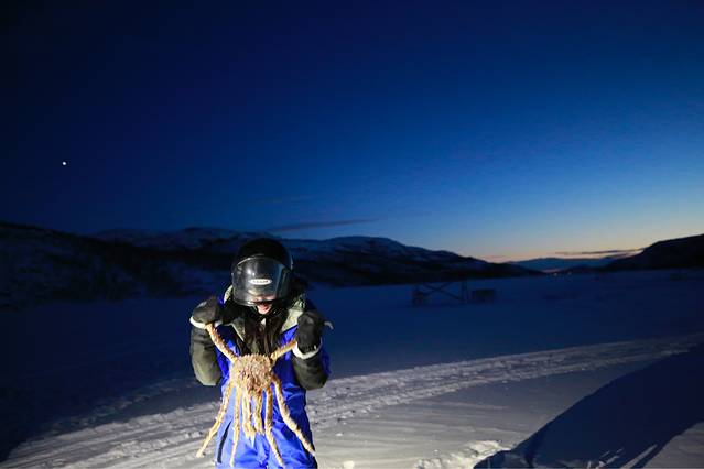 抓帝王蟹:到达集合点snowhotel,这是一个冰雪度假酒店,可以体验各种项目:哈士奇拉雪橇,爬山,帝王蟹,体验冰屋等。