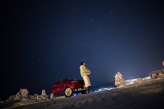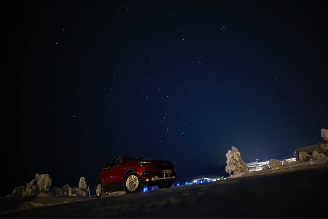 冻了两小时后双手完全失去知觉…一对同是住在这个酒店的英国夫妇,见我蹲在雪地拍摄前来询问。他们告诉我已在这里近一周,一直多云无星空,更没有极光。这是他们最后一晚,他们邀我上车一同去山顶看极光。我上了他们车…在自然面前,我写下一切防备与粉饰。我们在那片浪漫的星空下一同呆到凌晨2:00。