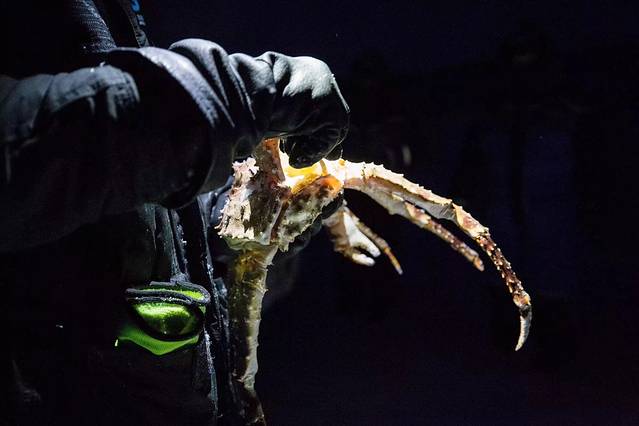 抓帝王蟹:官网订票。挪威境内,项目在冬季有。在snowhotel集合。坐专门的摩托进更深处。捕捞帝王蟹,之后回餐厅畅吃。