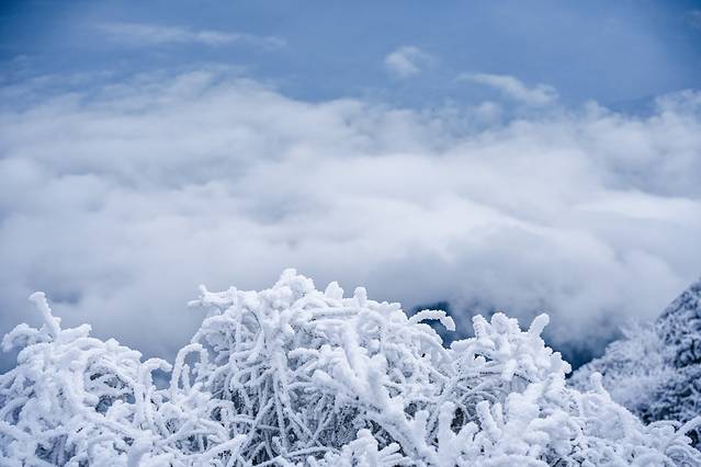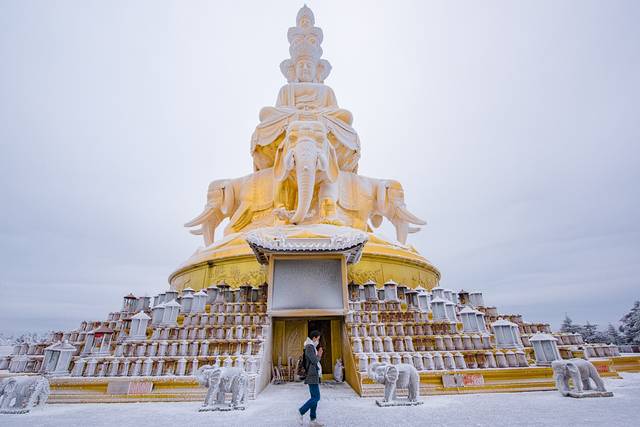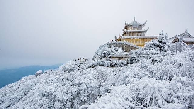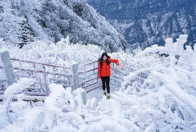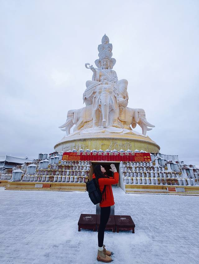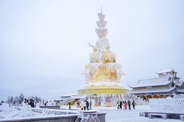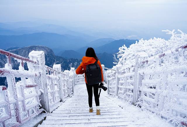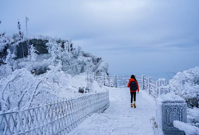 没有雪的峨眉是无趣的,但庆幸的是我每与峨眉相见尽是在这静谧无瑕的冬季。寒冬的峨眉山有墩墩积雪,有皑皑白云,有冬日升起的浪漫抚慰朝圣者桎梏的心灵,所以我来啦~