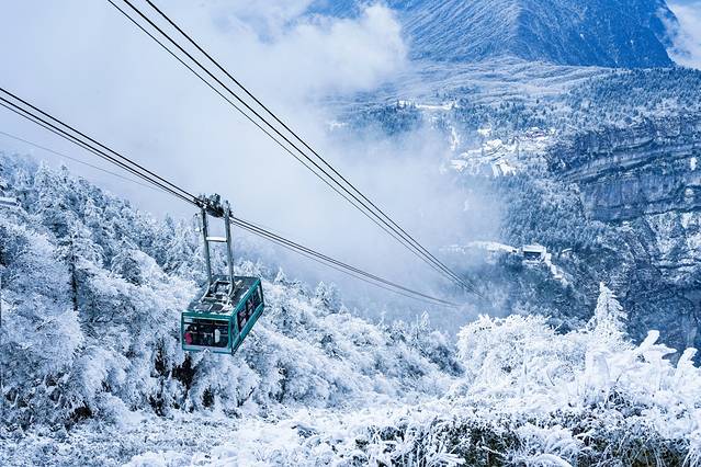 从接引殿乘坐缆车到达金顶只需要五分钟左右,飞速的缆车在山间滑动,漫铺的云层仿佛都被我们的这一举动所牵连,一时间冲破云顶犹如踏入仙境,茫茫的冰雪世界让人不知从何处看起!
