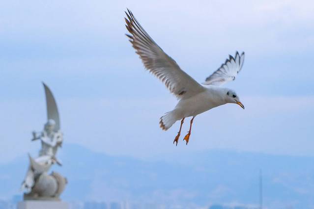 而冬天,还有许多从西伯利亚飞来过冬的红嘴鸥,可以准备一些干粮(面包或者馒头)喂海鸥,公园内很好拍照,但是要注意安全,不要在水域边的石头上,容易打滑。