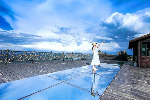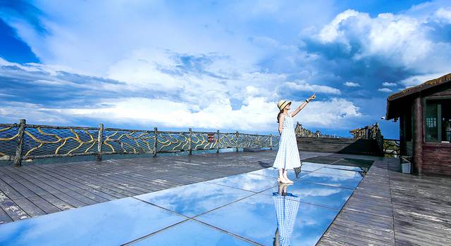 如意峰可以说是整个阳朔比较独有的景区,在高空俯瞰着丛山峻岭,随手一拍就是大片感。在云顶处一块“天空之境”可以与蓝天白天同镜而出。