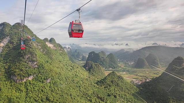 如意峰景区是2020年新修建的景区,这几年一直都有刷到视频,也看到朋友圈有朋友游览,感觉特别的美。如意峰景区位置位于阳朔高田镇,可以直接搜索导航。网上门票成人240元,儿童130元。主要项目有索道,索桥,360度云顶,林中漫步彩虹桥,玻璃栈道,唱游桂林数字馆。门票包含了所有的项目,但是林中漫步道和玻璃栈道需要自费一个5元的鞋套费用。全程游览2个小时左右