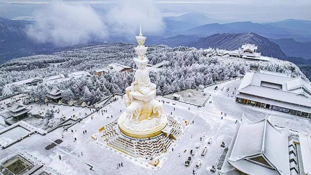 银装素裹的世界说什么都是最令人向往的,在一片纯白的里,仿佛所有的一切都变得安静了下来,纷扰的心境也渐渐沉淀;置身于此,俯瞰世间万物,层峦叠嶂的山峰神秘且连绵不断,哪怕就是天边的云,也是触手可及。这里不是一幅画,而是四川峨眉山金顶……