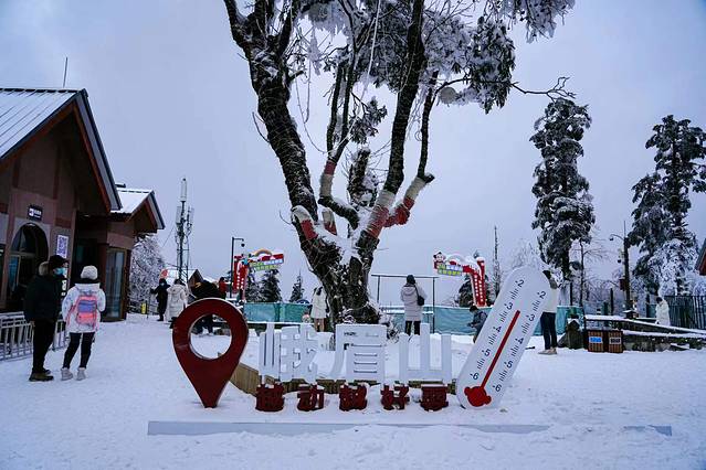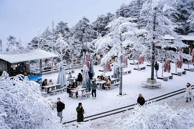 全新推出的“雷洞烟云 星空营地”也首次进入冰雪季,游客可入住各式特色木屋和主题帐篷,在烟吞银峰、雾吐青峦间,枕着烟波数星河,伴着冰雪赏婵娟。
