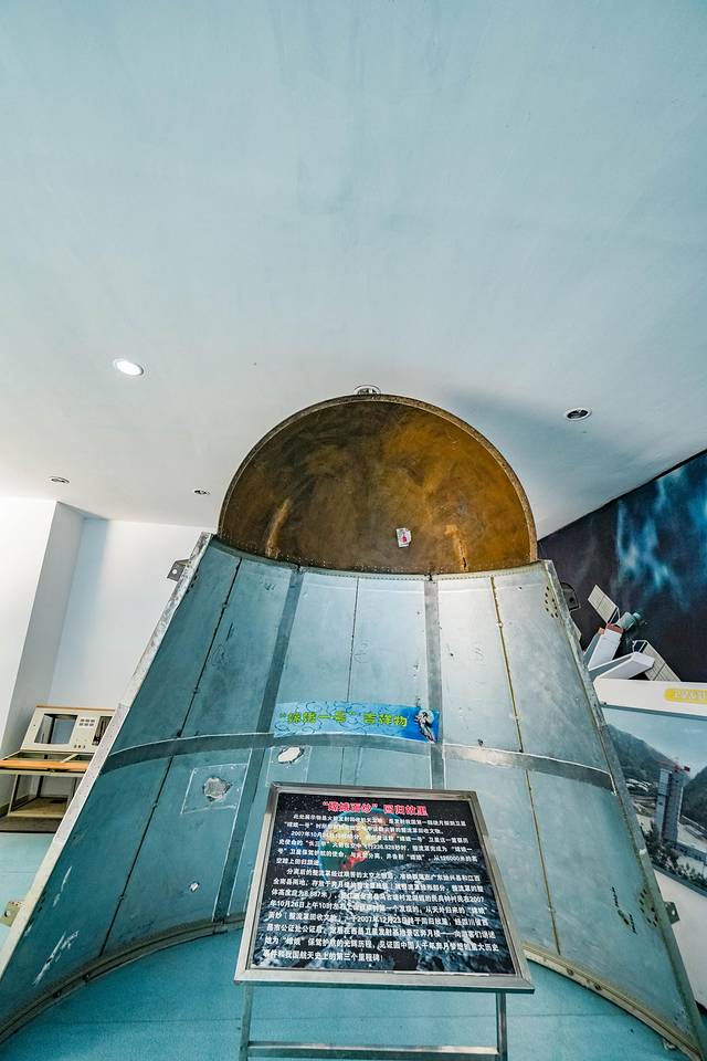 在小小的博物馆里,你还能看到火箭发射回收的“嫦娥一号”,它以一种坚韧无畏的勇士出征宇宙,又身披荣耀与光芒的荣归故里。