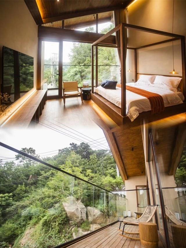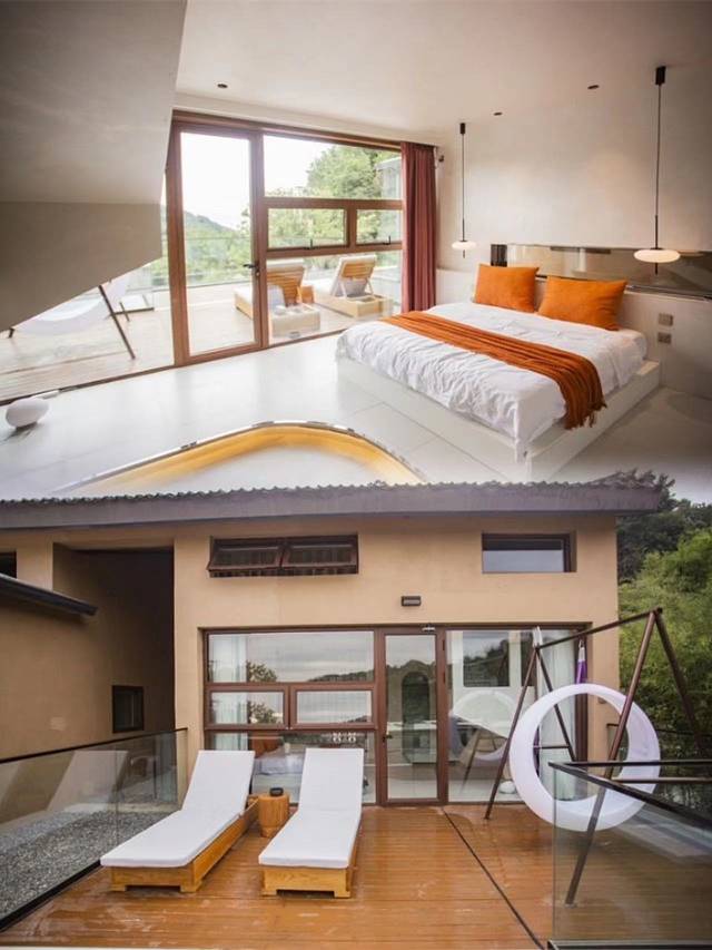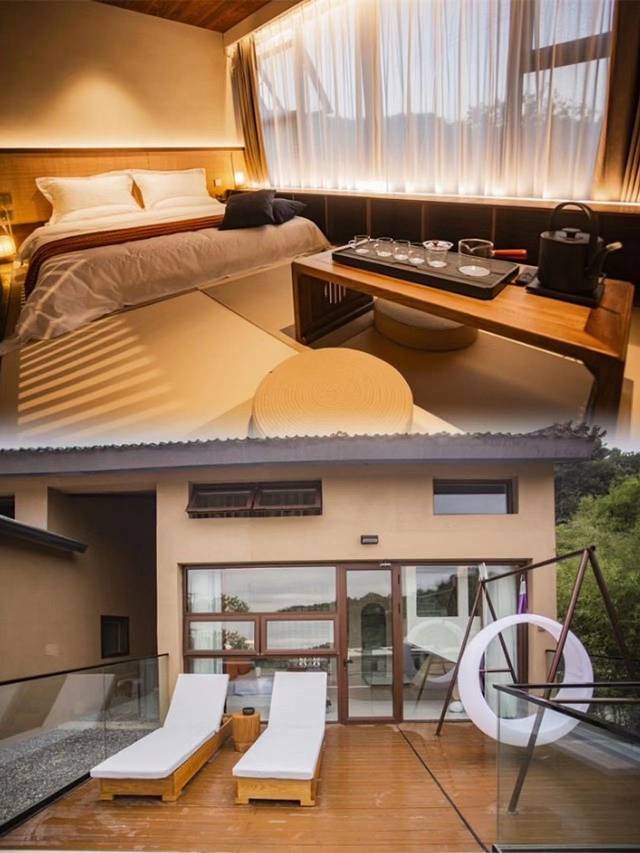 ❸石胜和松胜:水胜,2张1.8米大床 ,客房95m²,这不仅保证了每间客房的精品质量,更决定了客房之间布局格外分散,基本互不干扰。