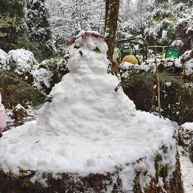 华蓥山的雪是比冰淇淋还要软的粉雪,随随便便都能捏成团,不管是打雪仗、堆雪人都能轻松实现,看我堆的大雪人,是不是有那味儿了~