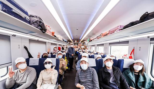 车厢内WIFI全覆盖,还有座位上的充电插口,旅行的小细节全都安排妥帖。摆放好自己的行李,找到自己的座位,这一刻才真的有了真实感,从此,山不在高,路不再远。
