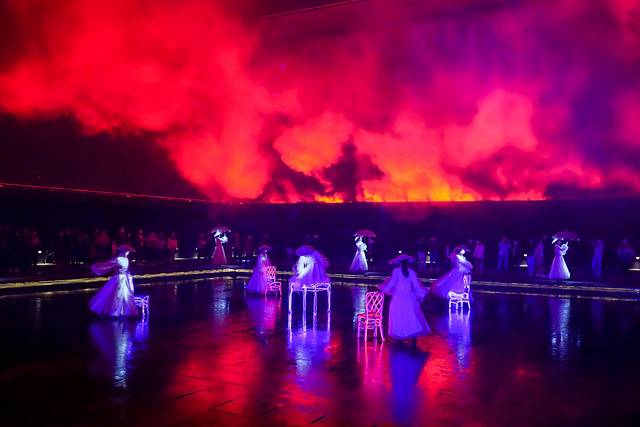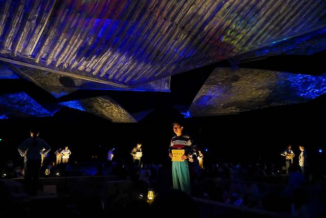 以前也看过一些“走着看”的沉浸式演出;但是规模比较小,一般就只有几十人,所以第一眼看到《只有峨眉山》的剧场时,只能用震撼来形容!