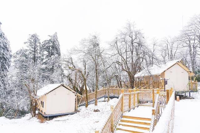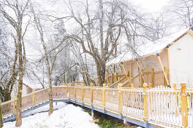 雷洞坪滑雪场的旁边就是星空营地,这两年露营可以说火的不得了,很多朋友喜欢夏天找个风景优美,气候凉爽的地方露营,逃离城市的喧嚣,其实冬天来峨眉山星空营地,赏雪、滑雪、看星空,也是另一种体验。
