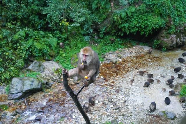 峨眉山灵猴可以说是峨眉山最好的代言人,每提到峨眉山,很多人脑海里浮现的第一个形象就是这些顽猴们,即想亲近,却又因它们的恶名在外而不敢靠近。的确,以前管理不太完善时,每年峨眉山上都会发生猴子引发的各种悲剧,现在,也时常会发生游客被猴子抢包、咬伤等状况。但其实,只要不要让它们觉得你会伤害它们,它们还是非常温顺可爱的(提醒:手上不要拎小包包、塑料袋之类的东西,不要假装手上有食物去欺骗它们,不要做出攻击性的动作,不要用声音或者动作吓唬它们等等)