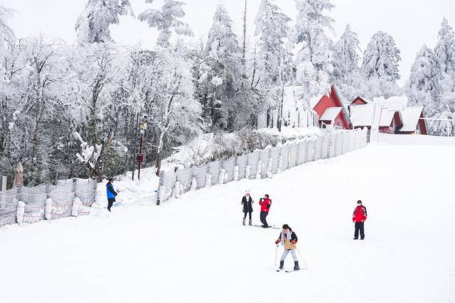 在金顶赏完雪,如果觉得不尽兴,可以到雷洞坪的滑雪场换一种更亲近的方式去感受一下峨眉山的冬天。雷洞坪滑雪场建于1998年,是川内第一个滑雪场,如今已经是周边游客冬天首选的滑雪