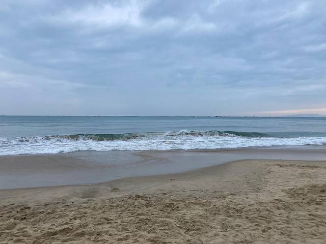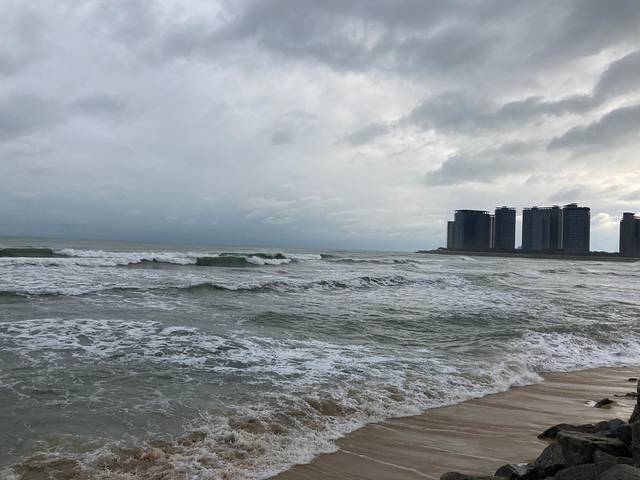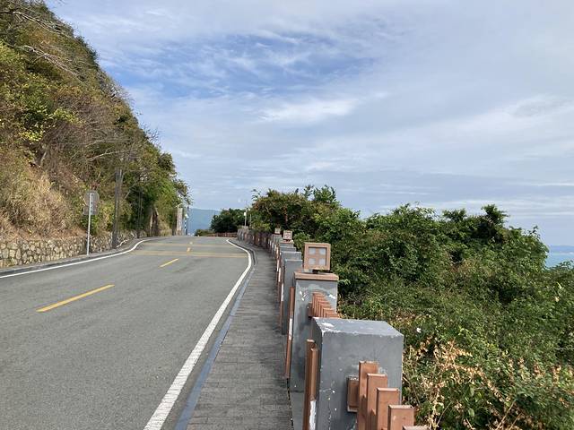 分界洲岛北侧不远处,走高速很快就到,下了高速到尽头三岔路顺着左转是日月湾海门游览区,有不少的店铺,有很多人在这里冲浪。如果岔路右拐,是一条临海的网红公路,一直延伸到融创日月湾的大桥。路边停了不少车,但这里是禁止停车的,会有警察驱赶,公路一侧就是礁石堤岸,下面有很短的沙滩,从这里不能下海,一般出片是开车跑车来可拍临海公路,不过天气不好,看海湾的风浪十分大,比较波澜壮阔。