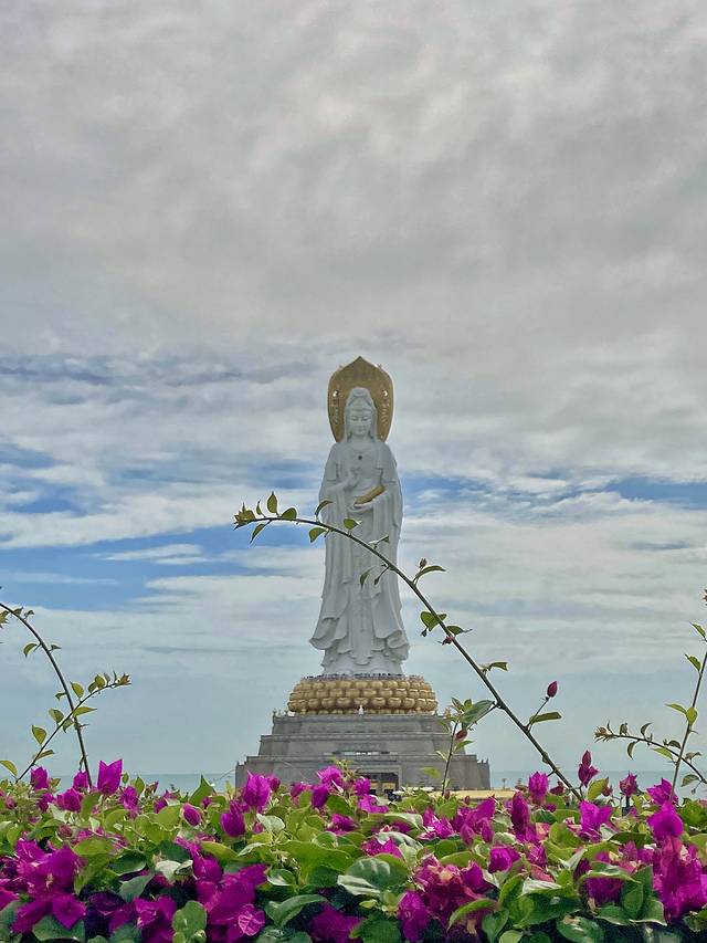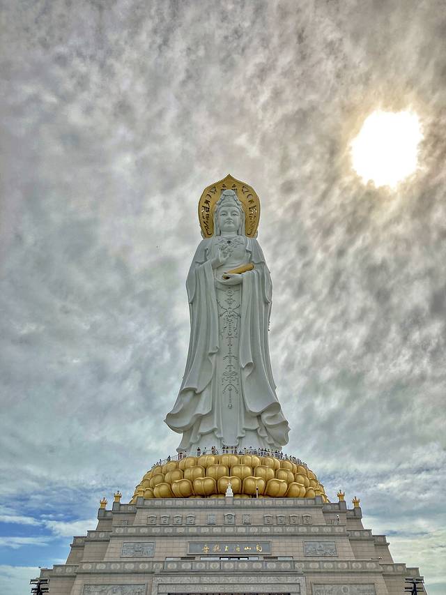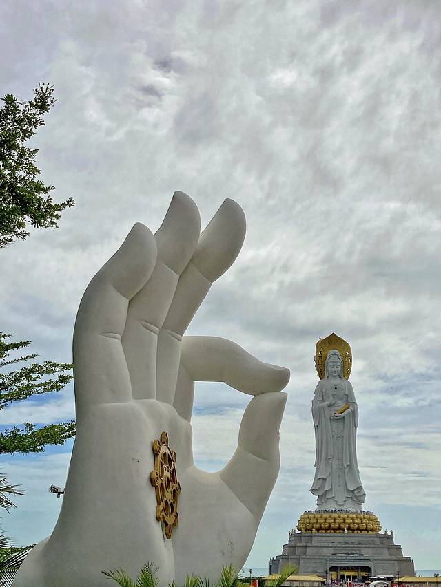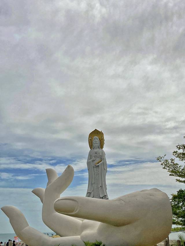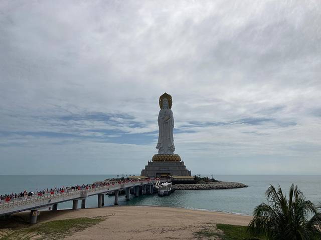 这个景区最大的亮点就是海上观音,不同于其他佛教道教的先相关景点,这个观音的震慑感是不能比的。如果只去看观音,就不需要坐观光车了,走15min就到海边,但如果去南山寺,一定要坐车,走路非常远。观音是立于海上的,有三面,有桥通道脚下,附近的沙滩禁止游客进入。海边广场上左右两边各有一只手,是出片的地点。既然看到观音,就一定要去抱抱佛脚,进入内部大殿满满的都是信徒的供奉,还有许多不同的观音可以参拜,佛脚的平台要往上爬7层才到。光是看个观音前后就花了2小时,时间不够就不去南山寺了。