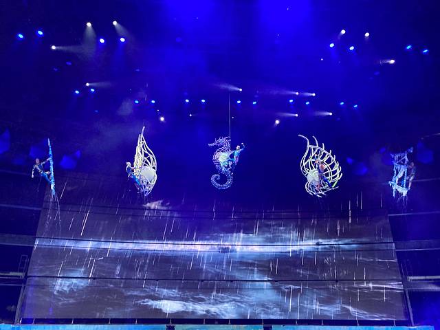 三亚这个旅游城市为数不多的表演之一,剧场位于亚特兰蒂斯西南角,挨着购物中心和水世界。个人感觉秀还是值得一看的,这种带水中表演的有点类似原来澳门的水舞间,但整体演出效果要差一些,如果想照的话建议往后坐,整个场地能看的更全些。演出是集杂技、舞蹈、花游等于一体,并且配合大屏幕和激光的数字表演,还是比较精彩的,至少值回票价,时长是不到1.5小时,提前30min可以进场。