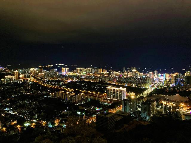 紧挨着市区的一个免费的小公园,这里主要是晚上来,因为离市区比较近,所以夜景对比热带天堂和凤凰岭要好看些。只能徒步上山,总共大约1h来回差不多,上山前半段比较好爬,台阶非常矮攀升感不强,到达一个平台之后,后半段台阶开始变高,看夜景爬到瞭望塔即可,后面还有一段路到逐鹿台,高度貌似还没有瞭望塔高。瞭望塔有5层位,最高处风比较大,基本可以看全整个三亚湾。