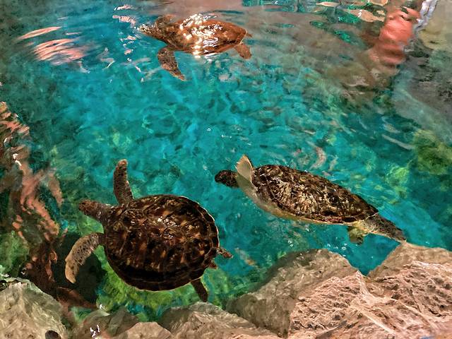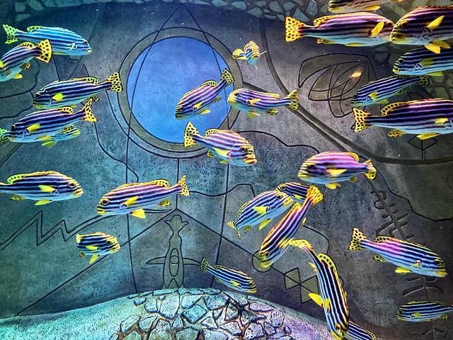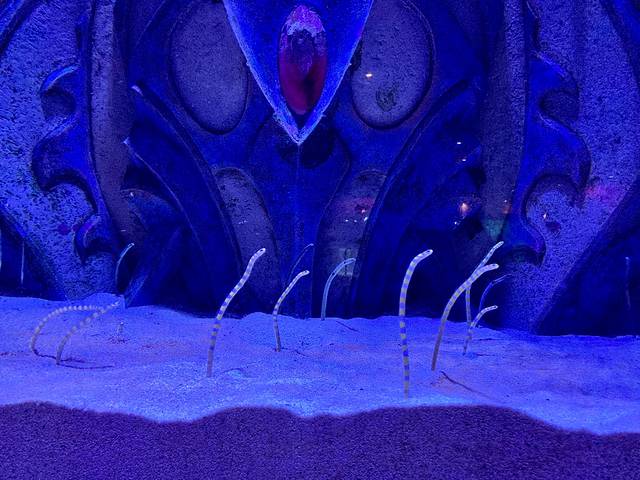 这是在购物中心里面的一个小型水族馆,属于网红打卡地,性价比不高,场地小门票贵,不过出片效果不错,如果是酒店住宿的客人可以免费参观。门口的沙丁鱼群很吸睛,里面水族箱内部的布景都是按照失落的海底城市来布置的,感觉最好看的是水母区,也非常容易出片;最大的水族箱的圆形和落地观赏窗是网红打卡的固定套路;这里还有比较少见的白鲸,一共两只,不过他们并没有好好游泳,全部都是倒着的,整体1小时足够了,不照相可能就20min看完。