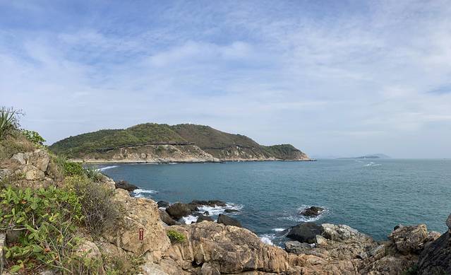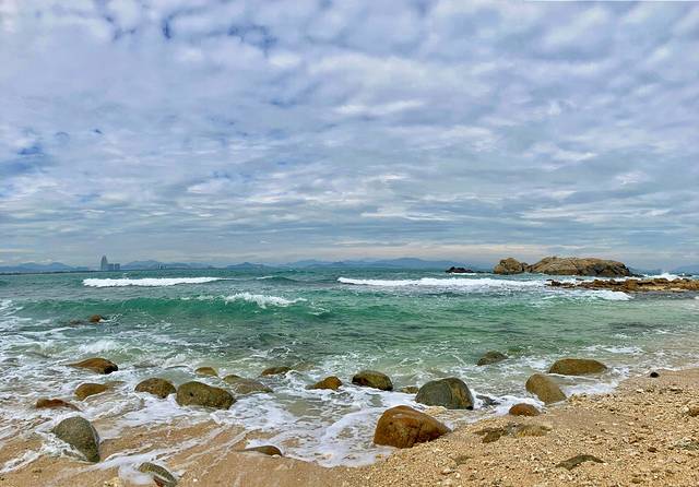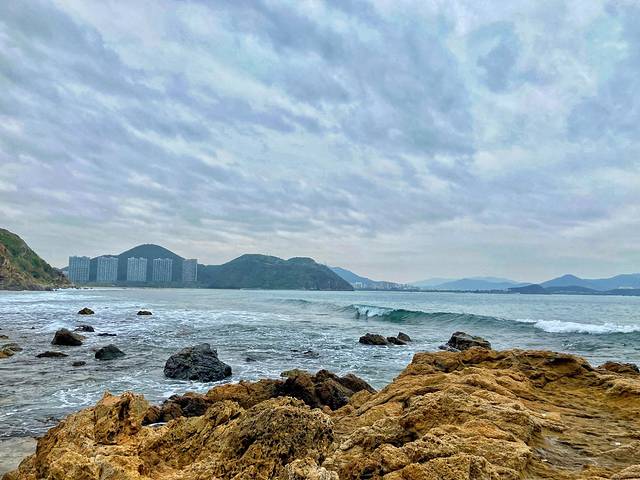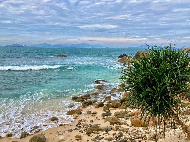 大东海西南侧的一片沙滩,礁石较多,不多人流比大东海和三亚湾要少很多,湾内有渔船,小东海的南侧,沿着海边礁石走到底可到达摄影基地,这里建了一些网红建筑专门拍照用,有小圣托里尼之称。沙滩的北侧一直走可到文华东方酒店,快到酒店有一段临海的公路出片不错。