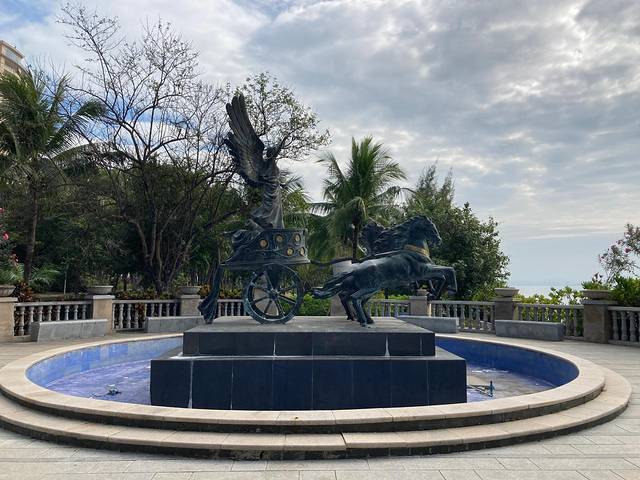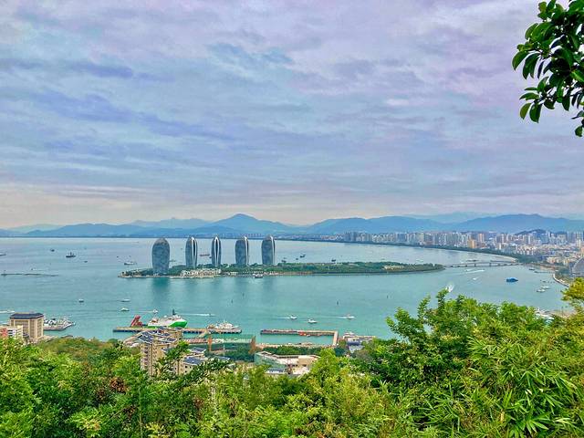 半山半岛这里最知名的景点,目前免票进入,缺点是停车场比较小,游客多旅游团多,车位十分紧张。鹿回头是个很小的景区,坐电瓶车5min到达半山腰,然后还要走20min以上才能到达山顶,比较奇葩,而且从大门到山顶的路是螺旋状的,没有直线步道。山顶的视线很好,是看凤凰岛最好的位置,还可以俯瞰小东海和游船码头,除此之外就没有其他了,时间上性价比比较低,还有一些设计不错的咖啡馆可以打发时间,天气好的话白天比晚上更好看些,晚上城市的灯光不是很足。