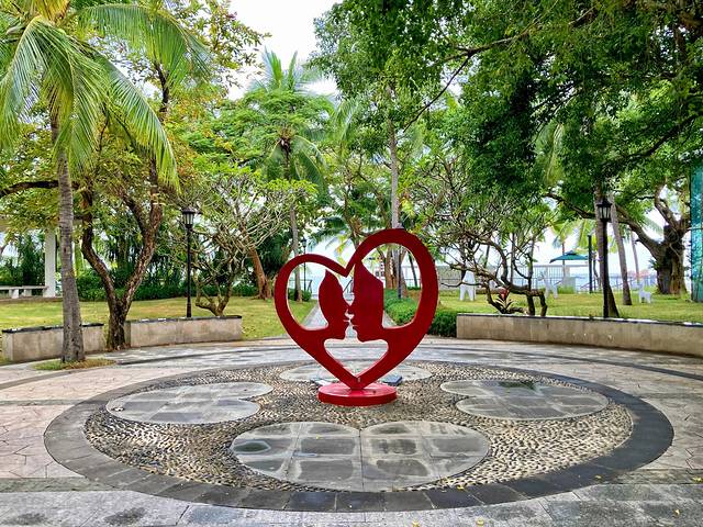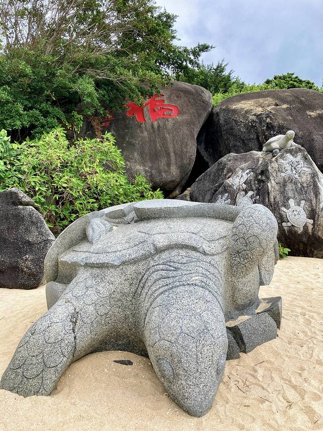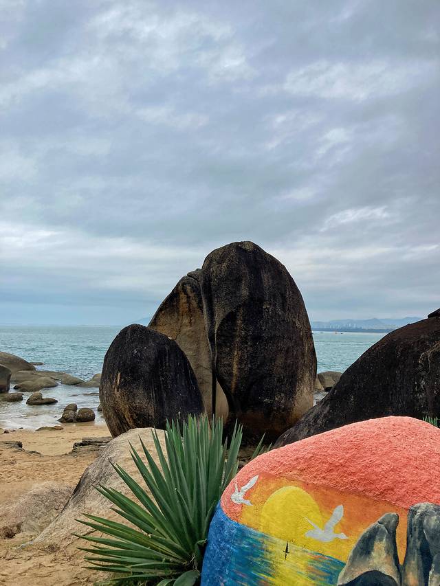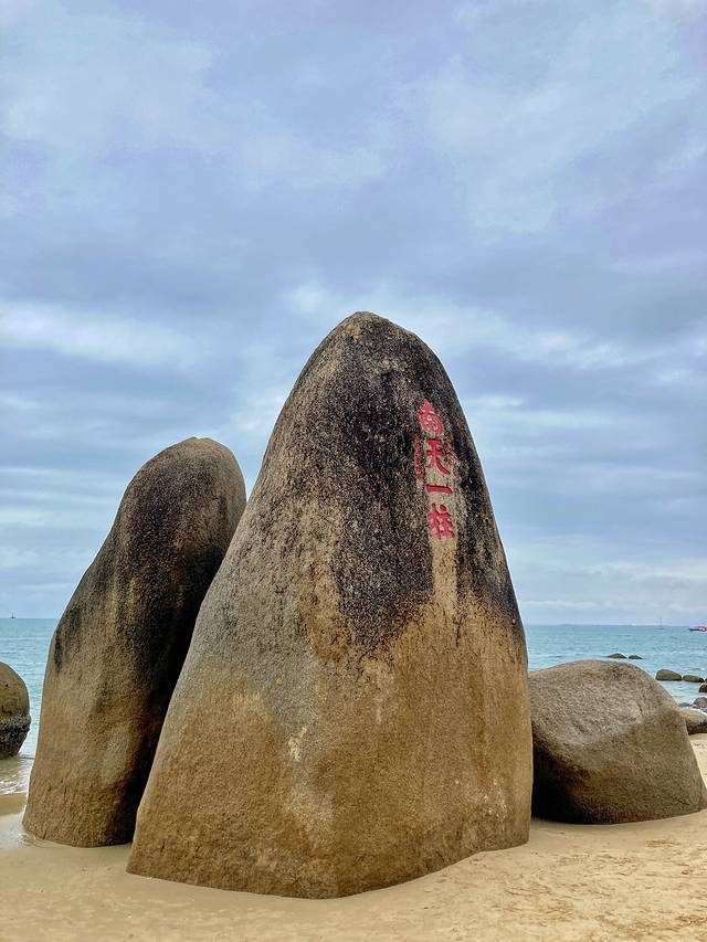 这个景区比较大,建议坐观光车,车先从东侧绕一圈,看看各种历史雕塑,然后往西开,这里中途不要下车一直到海豚千秋站,下车沿着沙滩走,一路有景点海判南天、南天一柱等,直到天涯海角石,门票送的咖啡位置在海判南天附近,沙滩旁边的路上找一找。在天涯海角石坐车回到海豚千秋站,往回走,又可看到情侣树、日月石等,这一圈石头算是看全了。
