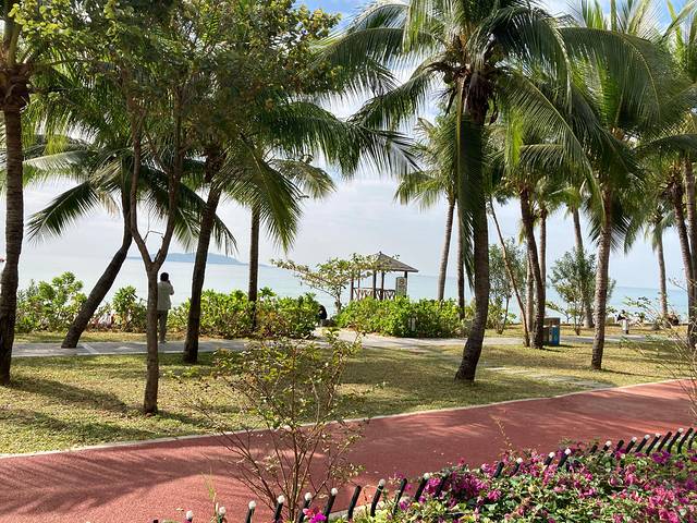 沿着三亚湾的沙滩而建的一座完全免费开放的滨海公园,非常非常的长,基本整个三亚湾的海滨都是公园,从市区一直到机场那边。公园里建有专门的步道,可以跑步,有许多绿植,当然椰树是必不可少的。沿路有很多停车场,隔一段距离一个,不过每个停车场都很小,大概能停十几辆车。地图对耶梦长廊的定位是在龙兴海鲜广场对面,这位置有不少大排挡。如果机场那边,人流会比市区少很多,有阳光的时候,感觉十分惬意。