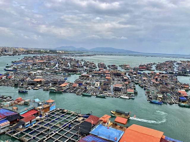 最全的套票是三个地方都能参观,首先上下岛有两种方式,推荐缆车上岛,坐船下岛。人太多了缆车排队30min,入口闸机可以刷身份证,但是岛上只能刷二维码。一个缆车4人,前半段是跨海的,可以在上方欣赏海上渔排的布阵,后半段过山,运气好可能能在树上看见猴子。