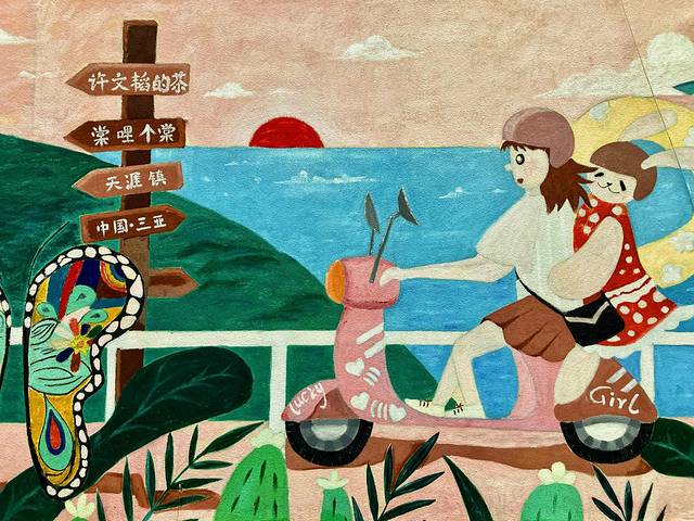 回到码头,走另一个方向是去渔村,中途15min经过一个比较大的商业区才到达。渔村的景点一路有告示牌,文创馆、灯塔、书屋等,村子本身不大,不过去灯塔有些远。村入口的小吃摊不用吃,沿海的路上碰到网红虾饼一定要吃,他家比起其他家确实好吃不少,集市没有去得意义就是普通市场。村路比较窄,而且有不少电瓶车和摩托穿梭要注意安全,房屋的墙壁上偶尔能碰到涂鸦和贴画。总的来说西岛还是值得一去的,略有一些文艺范,不过不多,商业化已经比较严重了。