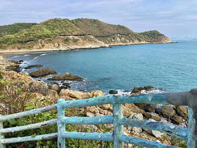 索桥可以看到亚龙湾,比较出片,如果不想花钱过桥的可以走旁边的情人谷。上索桥之前一定要先去右手边的观景台,这里是个单行的路线,否则想看的话还要走回来,过了桥有一个小型的观景高台,再前往200m就观光车站。