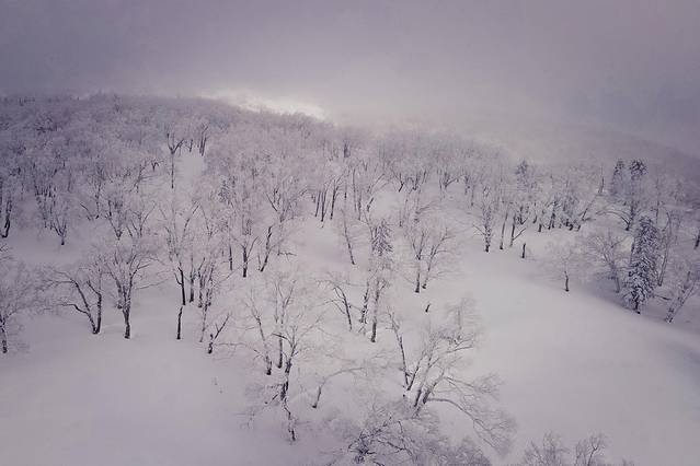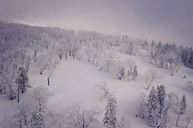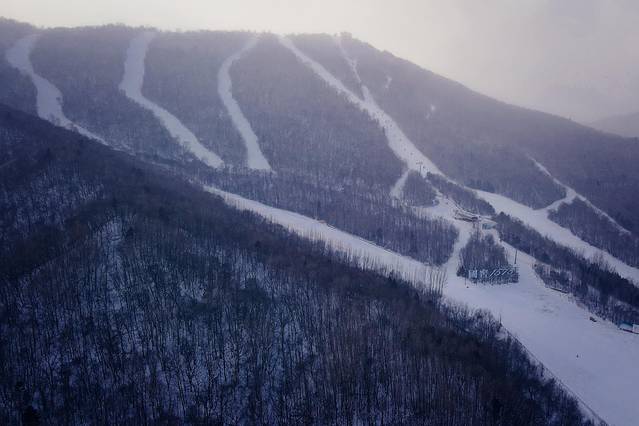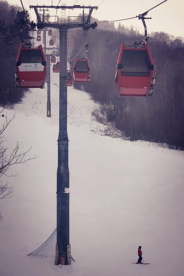 我们乘坐缆车上到了最高的高级雪道,乘坐缆车的过程可以看到沿途的风景,虽然天气不太给力,但依旧很美很壮观~!