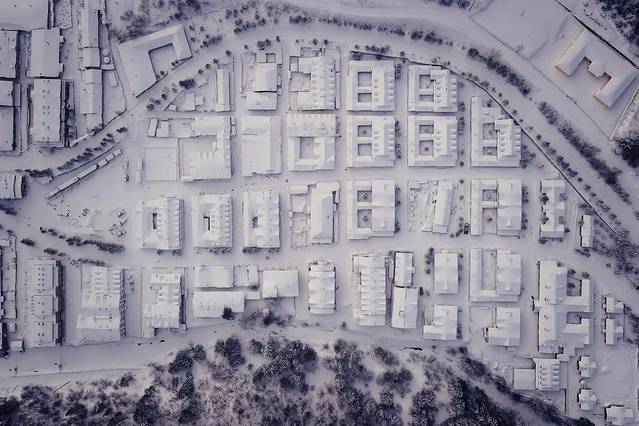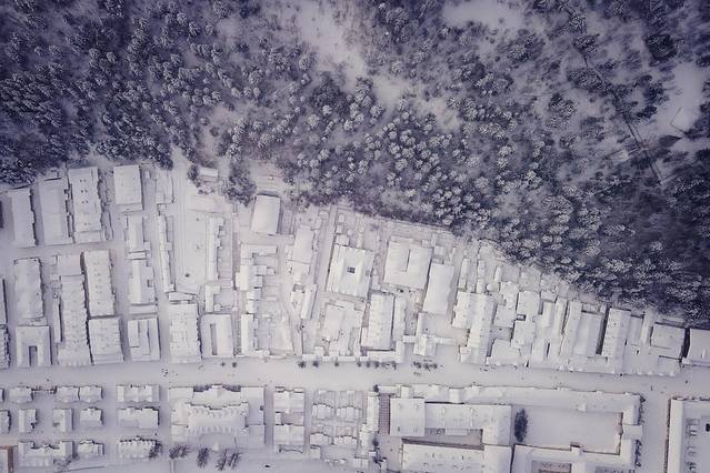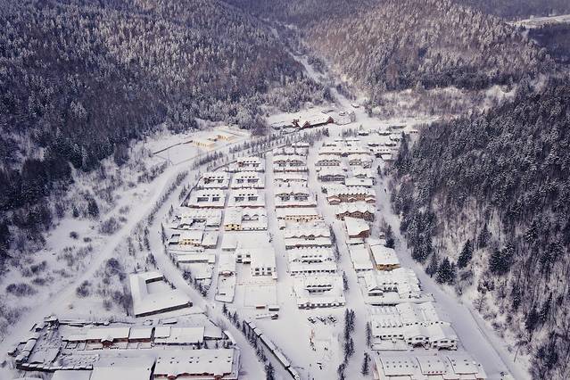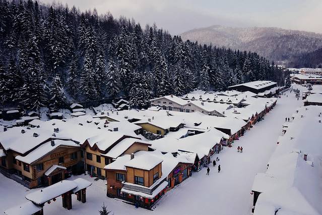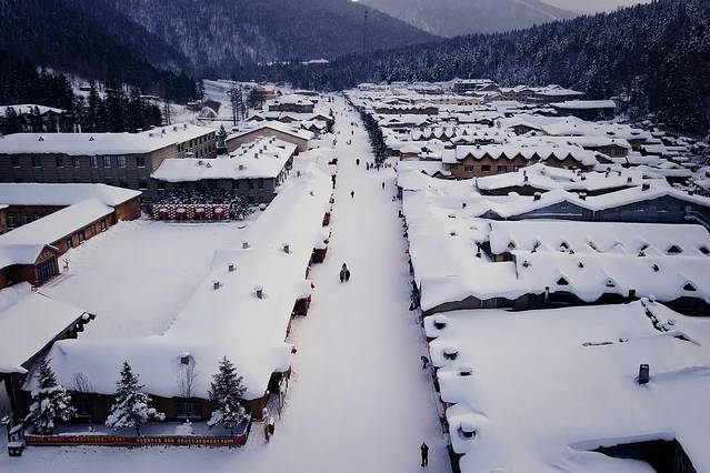 飞起无人机,俯瞰整座雪乡,俨然一个被冰雪包裹住的北方小镇,雪乡不大,但在冰雪的点缀下却显得格外与众不同。