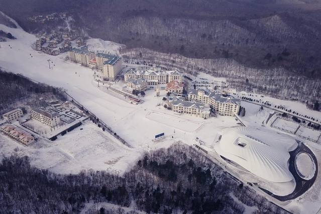 抵达亚布力滑雪场的时候天气有点不给力,灰蒙蒙的,而且飘了点小雪。