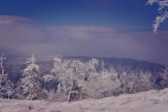 当天上山的时候天空飘着小雪,北风有些大,不过这丝毫不影响大秃顶子山的气质。