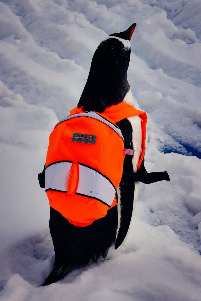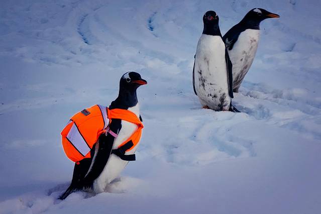 这只背着书包的就是大名鼎鼎的极地公园的吉祥物——逃学企鹅了,哈哈