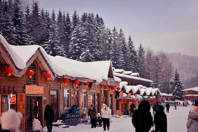 雪乡原名双峰林场,位于黑龙江牡丹江海林市,以雪韵大道为中心贯穿整个雪乡小镇,雪韵大街两旁红灯笼高挂,白雪皑皑,无处不散发着浓浓的年味儿。