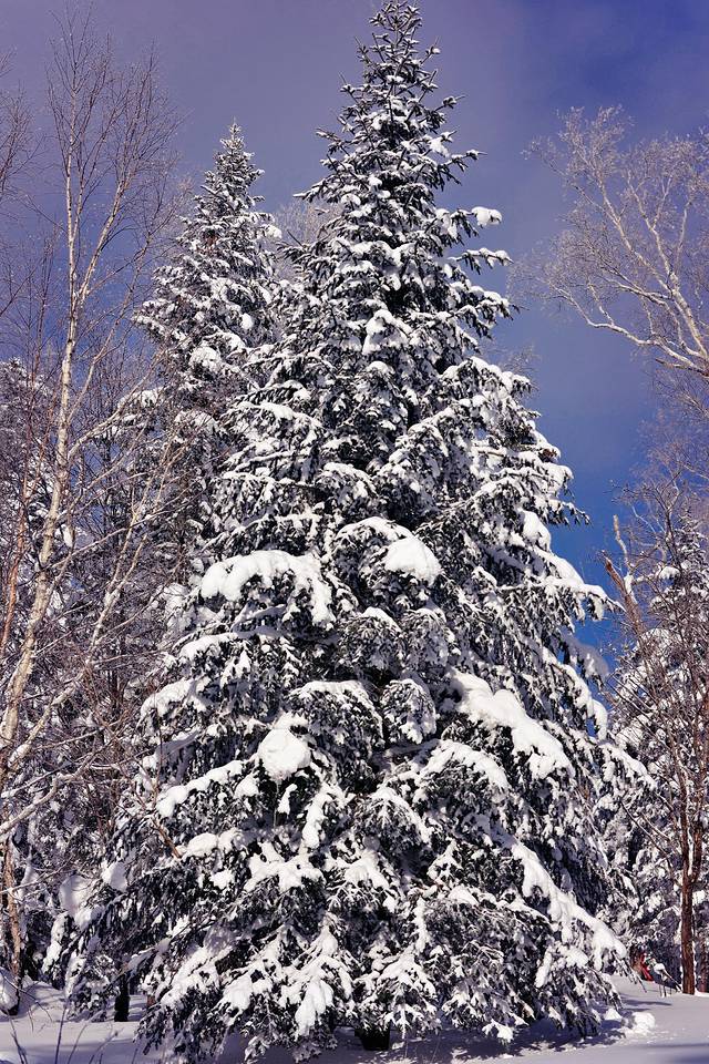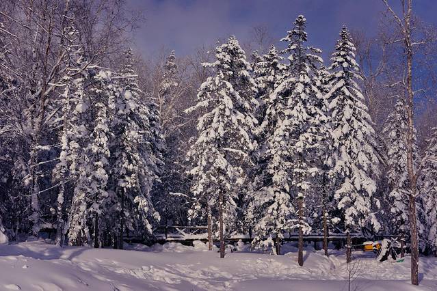 冰雪画廊是由大片的落叶松和针叶林组成,大量的白雪将成片的森林所覆盖,这里古木参天,银装素裹,大雪随风雕琢,树木结满晶莹剔透的树挂,在阳光的照射下璀璨夺目,形成了难得一见的冰雪幻境。