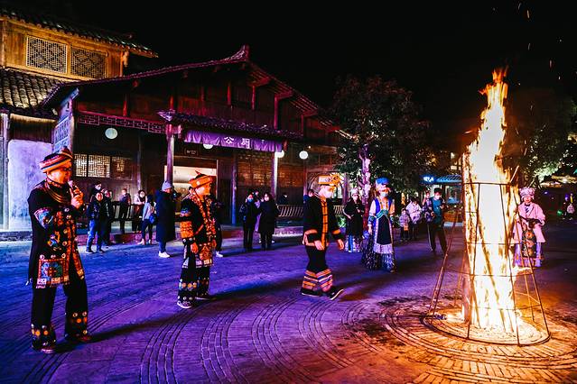 晚上的乌江寨是热闹的,先是一场篝火晚会的狂欢,认识的,不认识的,大家围着篝火起舞,每一次起舞都是一场火热的洗礼,像我们的祖先一样,围着火堆表达自己喜悦愉快的心情。