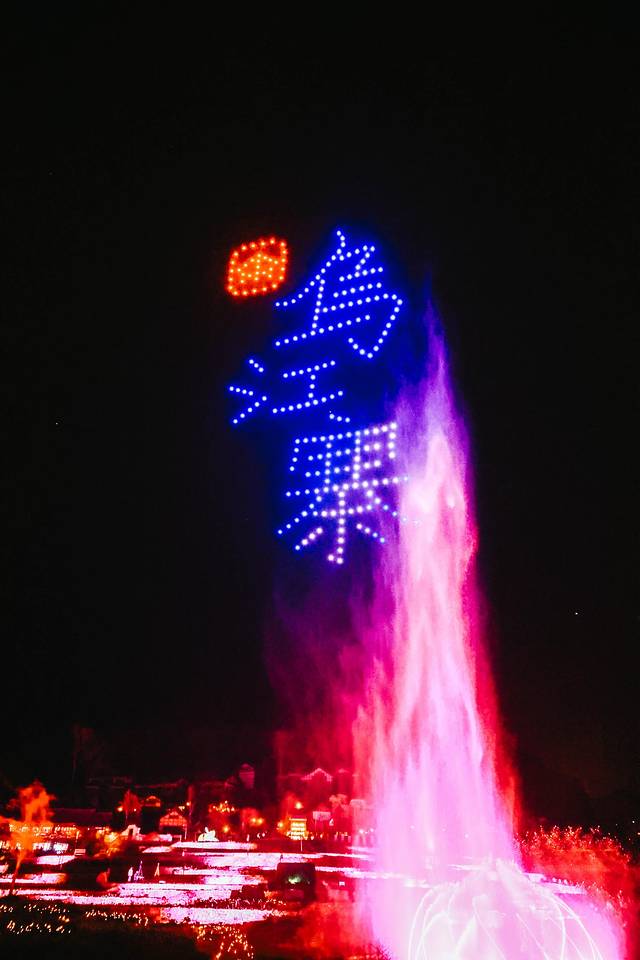 随着乌江星音乐水舞秀的开启,上百架无人机在音乐声中变换腾空,以夜空作画,绘出一场声与光的视觉盛宴。