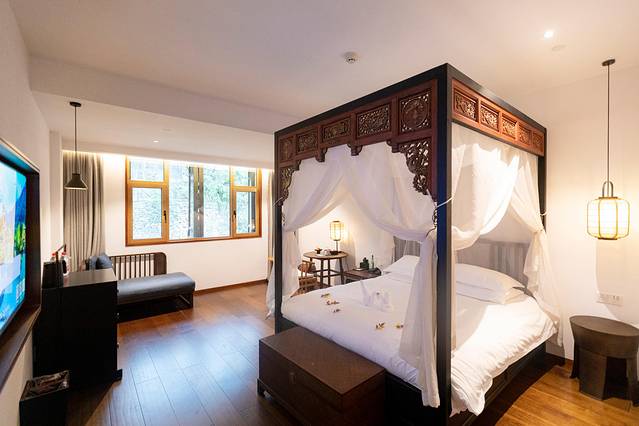 在乌江寨里拥有1家奢华度假酒店、3家主题酒店、9家风格各异的民宿,每一间都有这不同的特色和入住体验,还能打卡《极限挑战》等顶流综艺及多位明星下榻的同款酒店。