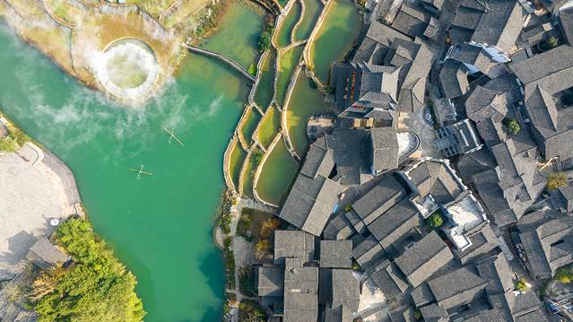 东游客服务中心——陶艺街——红军亭——和平染坊——乌江邮局——江岸鱼吧——灯笼铺/竹器铺——临江食街——廻龙岛。
