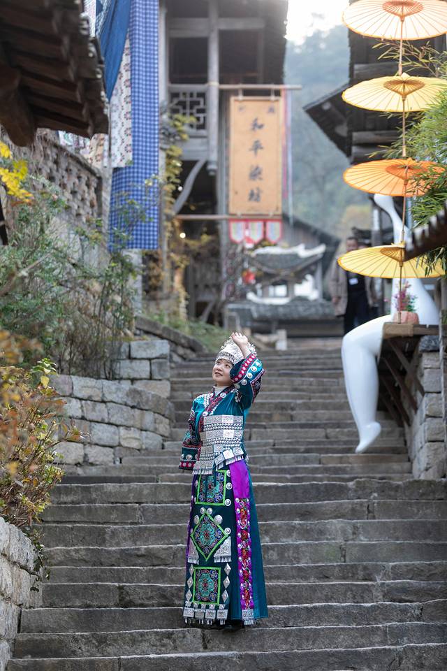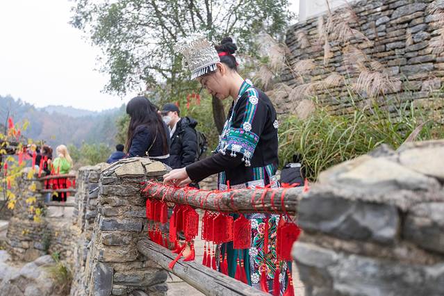 换上独具民族风情的苗族服饰,做一日寨花,撑起油纸伞走过青石板路,驻足于风雨廊桥看青山如黛、轻舟入画。
