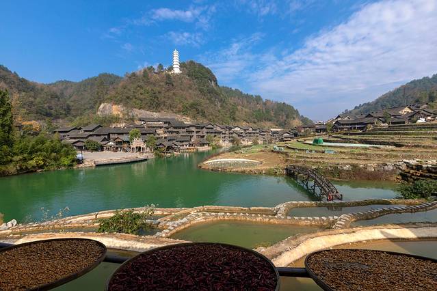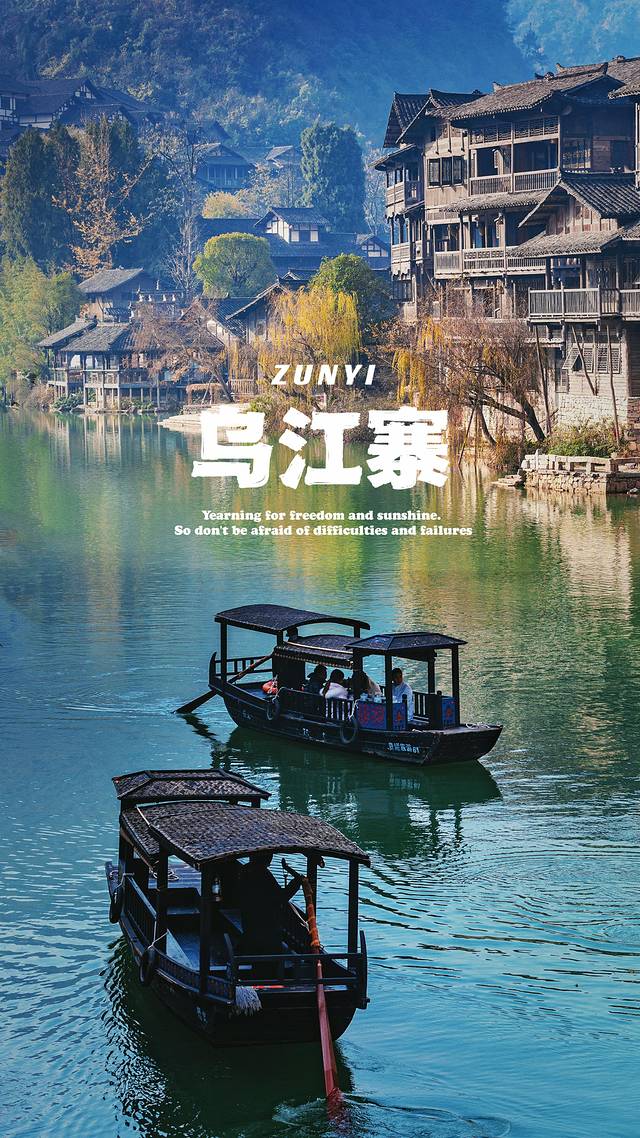江南千条水,云贵万重山,一湾乌江碧水飘落在山涧,如黛青山拥簇着乌江寨,两岸吊脚楼错落有致,满满的黔北风情,宛若治愈力拉满的世外桃源。